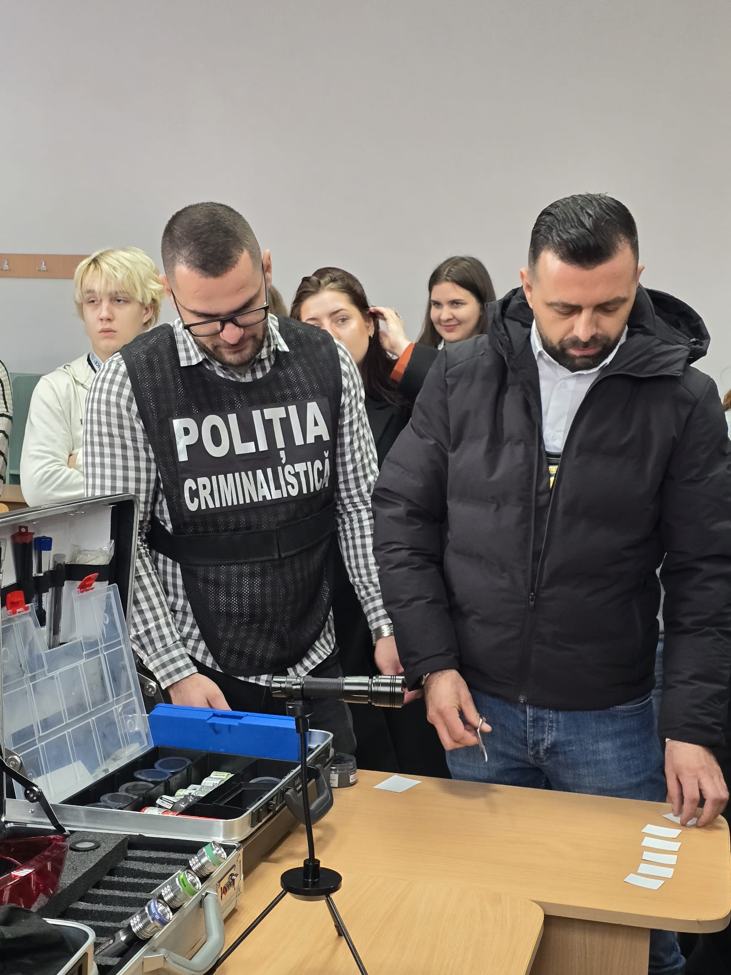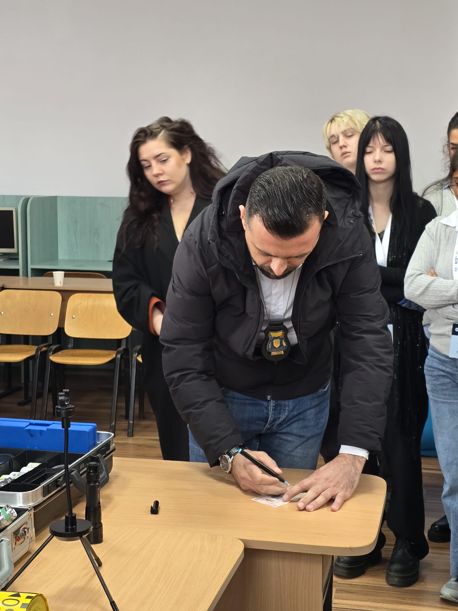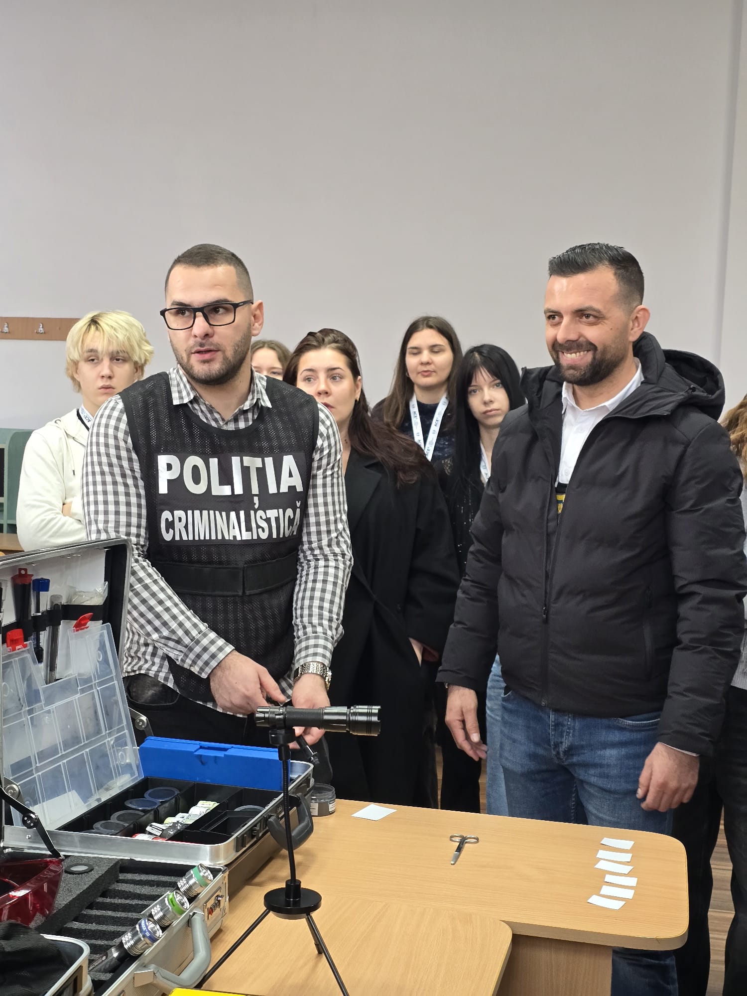Guided by stakeholder Miruna Prejbeanu, police officer, participants engaged in real-life case simulations inside a mobile criminalistics laboratory. These exercises demonstrated: