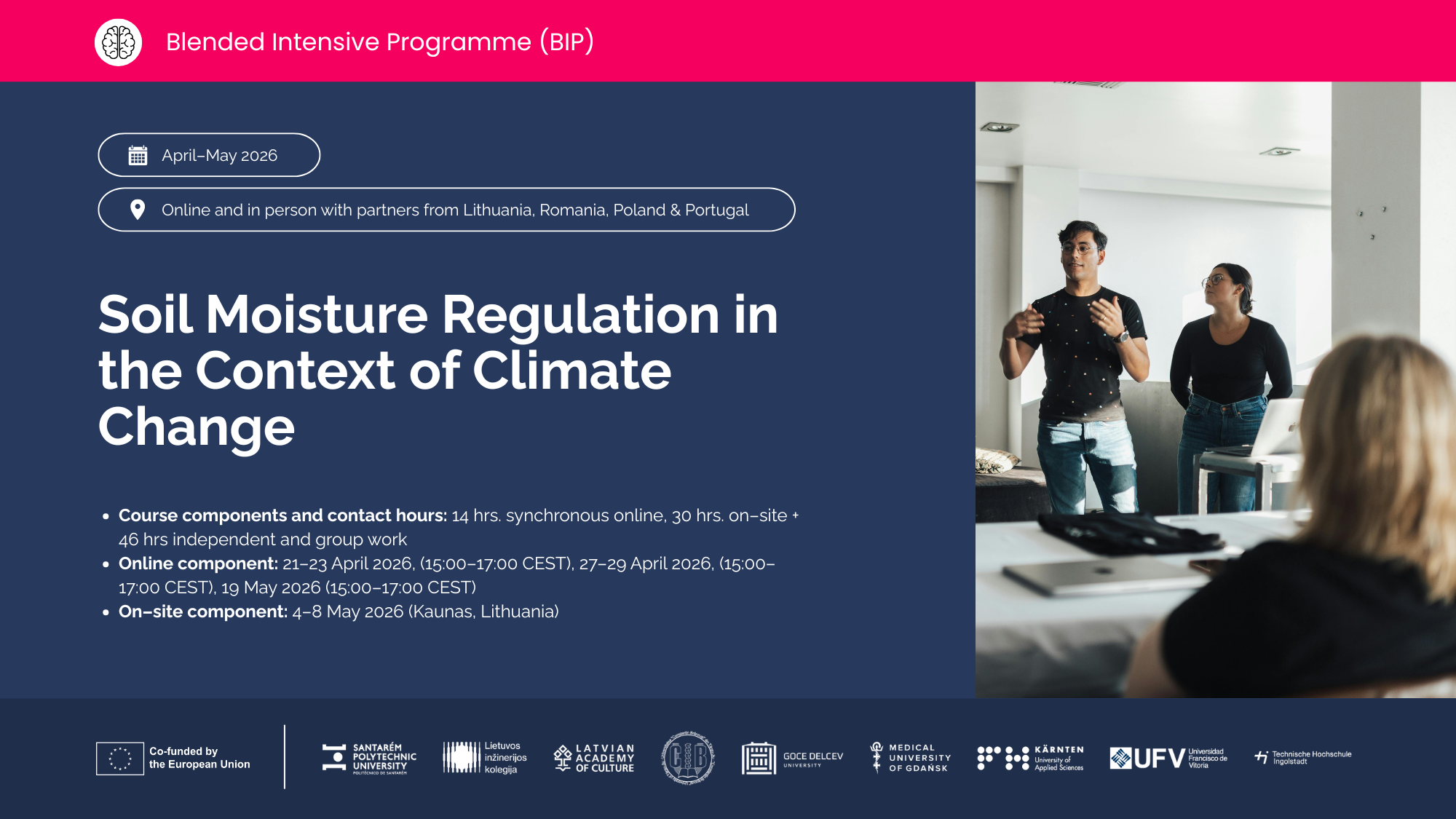 Lectures: Theoretical foundations addressing climate change, soil moisture dynamics, and the role of biological additives, with a particular focus on their implications for food safety, nutritional value, and human health. The course highlights how sustainable soil management practices not only enhance agricultural resilience but also support disease prevention and healthier lifestyles.
